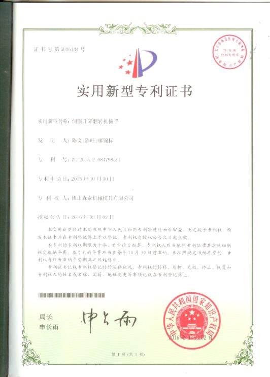 伺服升降翻转机械手实用新型专利